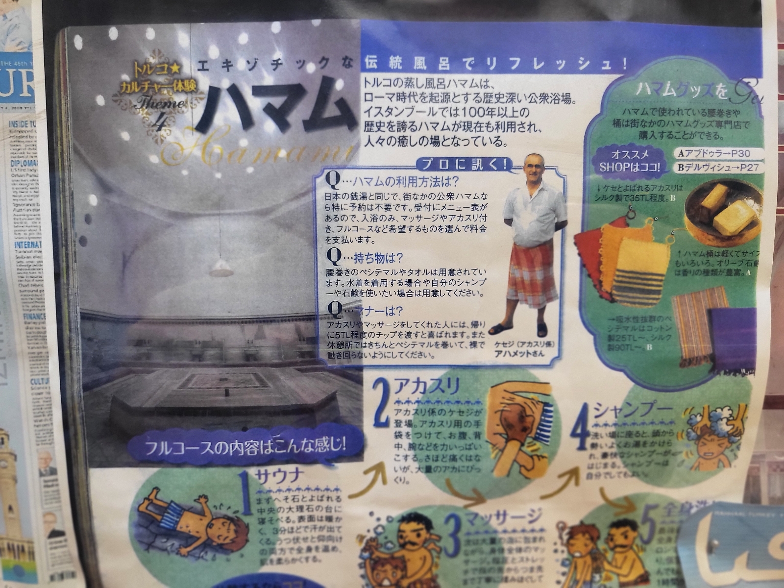 There is a sign out front of the bath that shows in Japanese how to take a Turkish bath. It is a bit different than a Japanese bath.