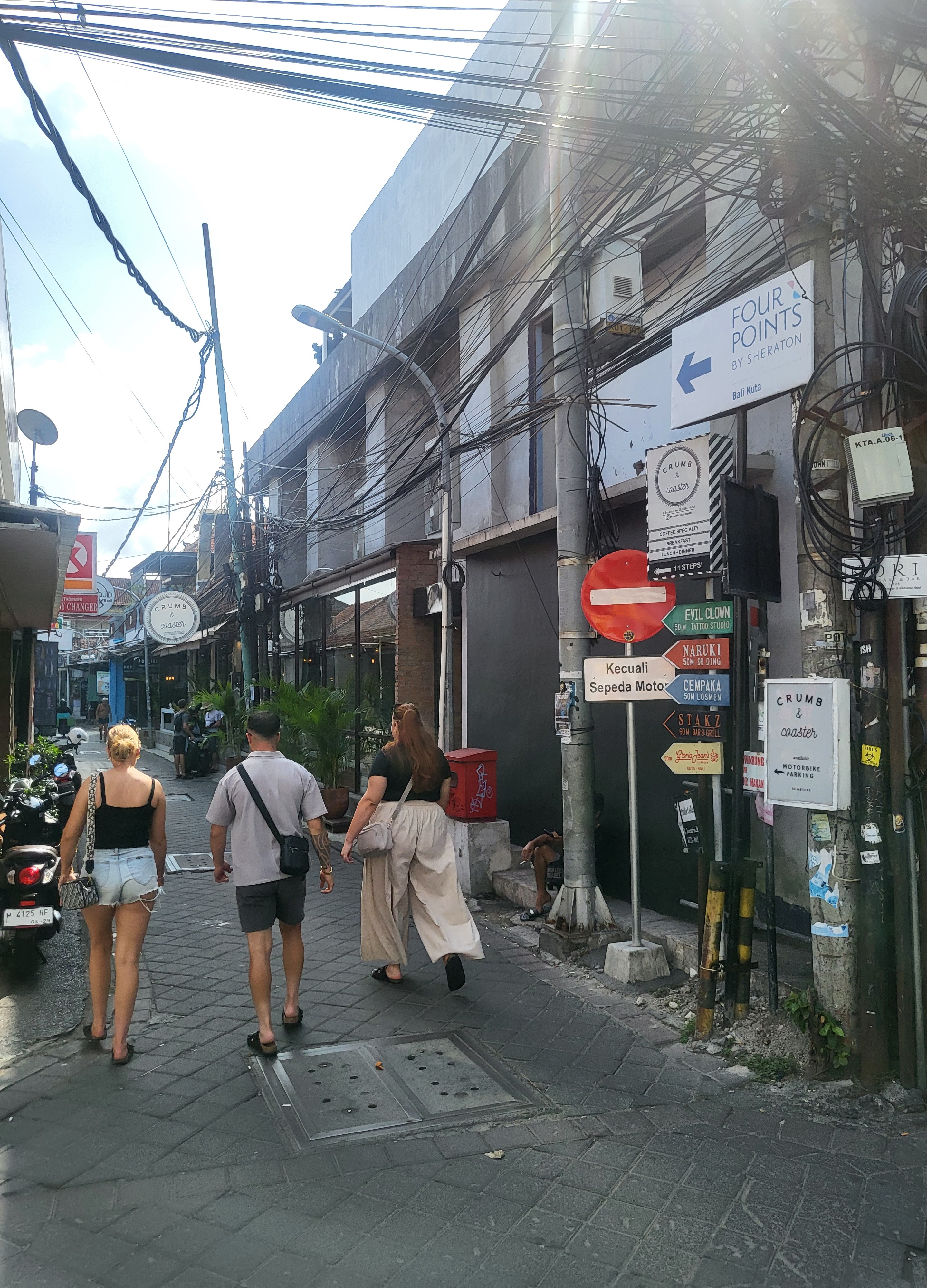 Really narrow street where both this restaurant and my hotel is located. I am waiting for a Grab. One already cancelled. It will be my first car ride in Bali.